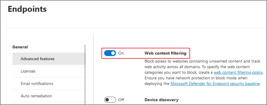 Endpoints -> General -> Advanced features -> Web content filtering -> On