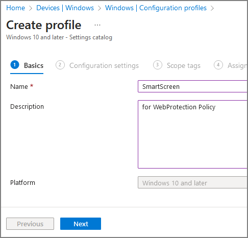 Edge에서 Web Protection을 적용하려면 Smart Screen을 활성화 해야합니다.