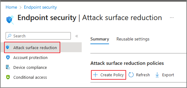 Attack surface reduction -> Create Policy