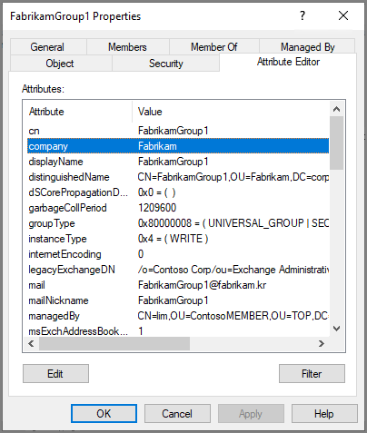Exchange Online의 ABP(주소록 정책)을 테스트 하기 위해서 AD 상에서 특정 OU의 사용자 개체들의 Company 속성을 변경하는 작업을 진행하였습니다.
