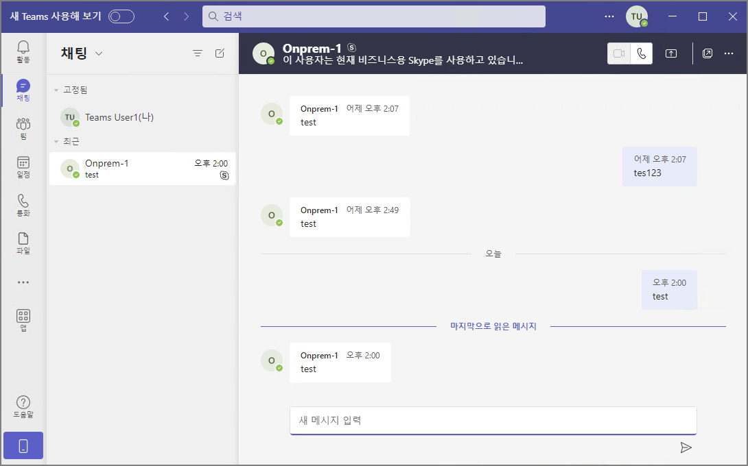 #teams-user1@fabrikam.kr 계정으로 마이그레이션 테스트를 진행하겠습니다.