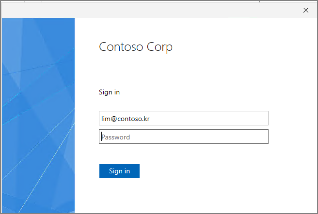 계정 설정시 아래와 같이 ADFS 로그인 창이 나타납니다.