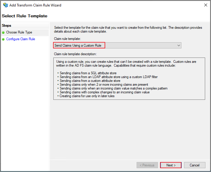 | Claim Rule Name | Custom Rule |