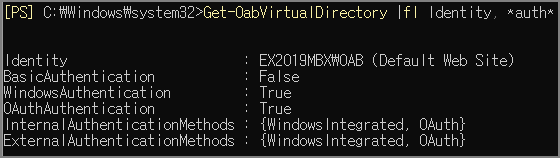 Get-OabVirtualDirectory |fl Identity, *auth*