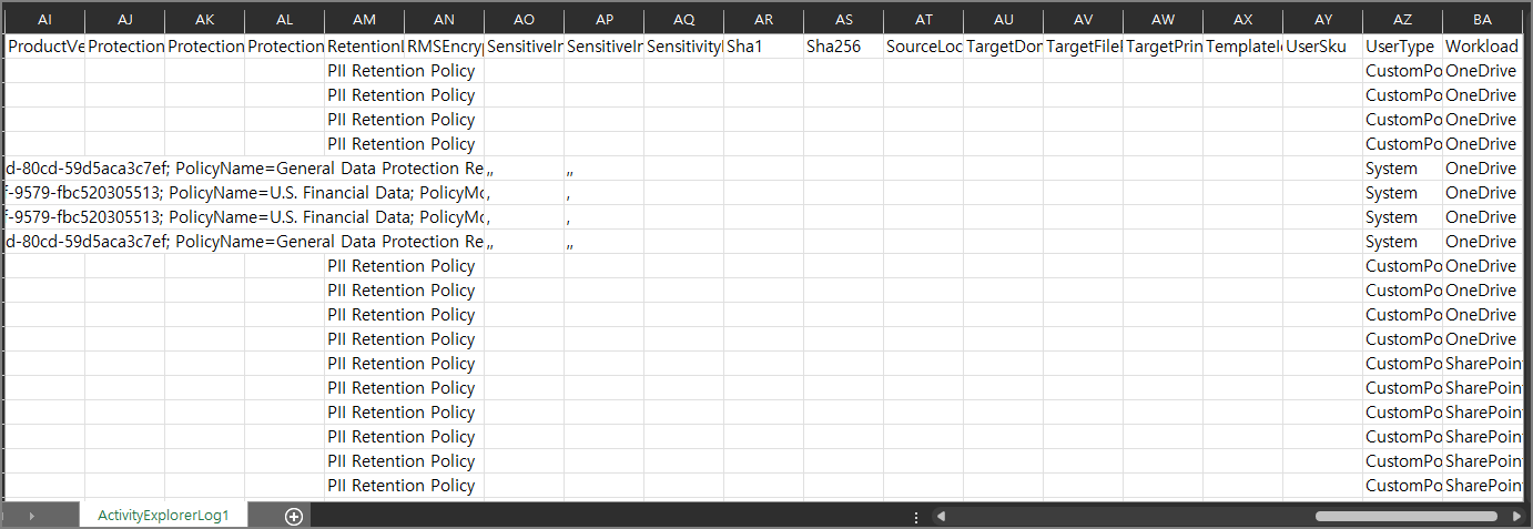 활동 탐색기(Activity Explorer)에는 AIP의 Label Log가 기록됩니다.