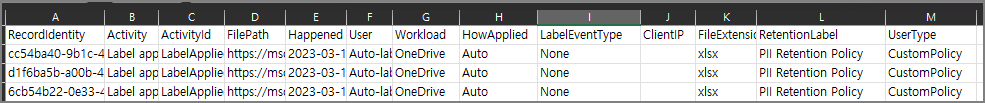 Export-ActivityExplorerData cmdlet을 사용하여 Microsoft 365 Purview 규정 준수 포털 데이터 분류> 활동 탐색기에서 활동을 내보냅니다.