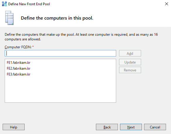 Pool에 속하는 Frontend Server FQDN 을 전부 추가합니다.
