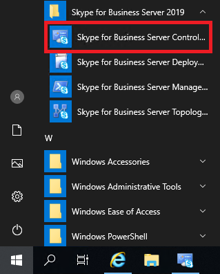 Skype for business Server 2019 Control Panel 을 실행합니다.