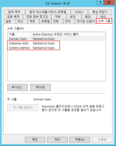 Enterprise Admins, Schema Admins 권한 부여