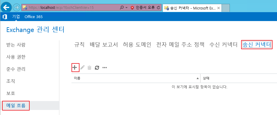 ECP 사이트 - 메일 흐름 - 송신 커넥터 - 새로 만들기