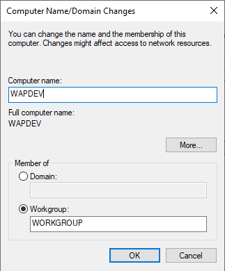 PC 이름을 변경합니다. (WAP은 도메인에 가입하지 않습니다.)
