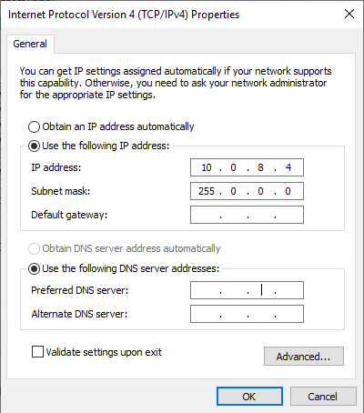 내부망 통신용 어댑터 설정