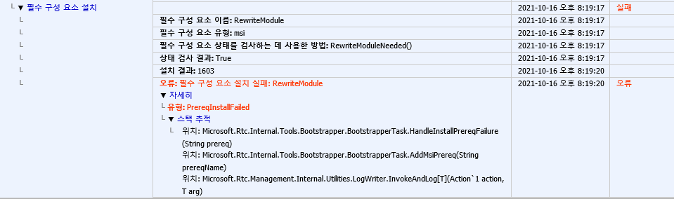 아래와 같이 필수 구성 요소 설치 실패: RewriteModule 오류가 발생하였습니다.