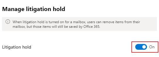 퇴사자에게 라이선스를 부여하는 것은 낭비라고 볼 수 있기 때문입니다. 이러한 경우에는 비활성 사서함으로 전환하여 소송보존을 유지할 수 있습니다.