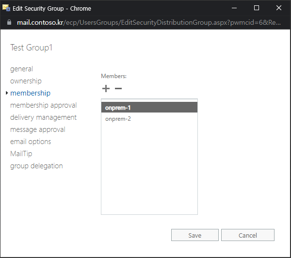 예를 들면 아래와 같이 test_group1@contoso.kr 에 발송한다고 가정합니다.
