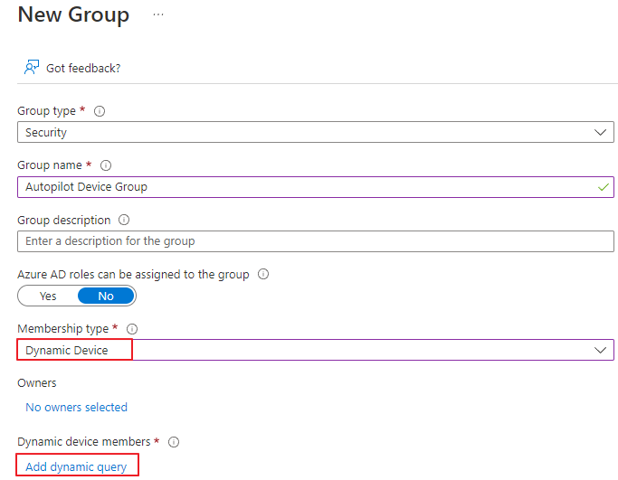 Autopilot 대상 Device 를 구분할 동적 그룹을 생성해야 합니다.