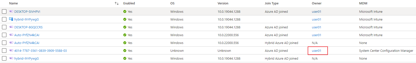 Azure Portal에서는 아래와 같이 Computer Name 이 맵핑되며, Intune 등록으로 변경됩니다.