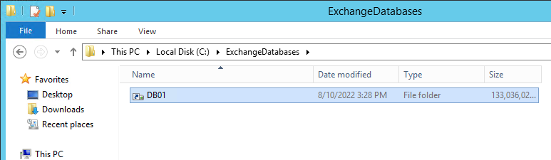 C:\ExchangeDatabases 폴더에 DB01 폴더를 생성합니다.