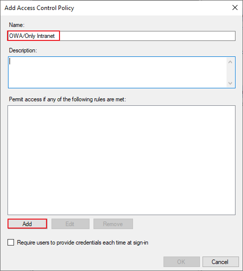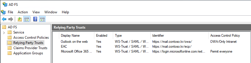 Relying Party Trusts -> OWA 클레임 인증 정책 -> 우클릭 -> Edit Access Control Policy