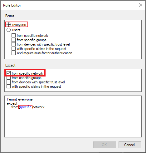 Everyone -> from specific network 체크 -> 하단의 specific 클릭