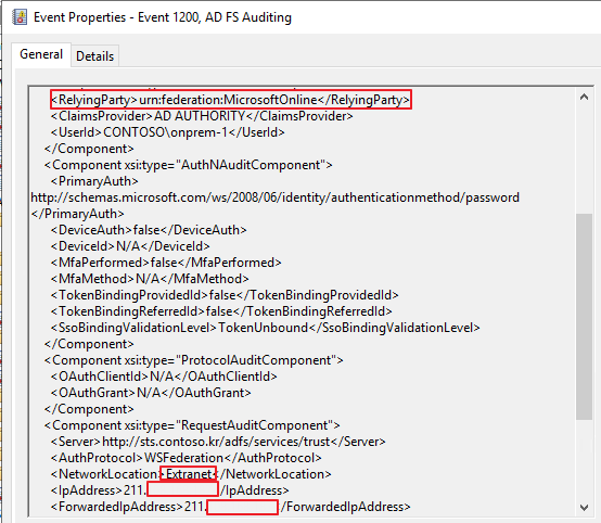 ADFS 의 감사로그를 확인해 보면, UserAgentString 항목에서 Thunderbird로 기록됩니다.