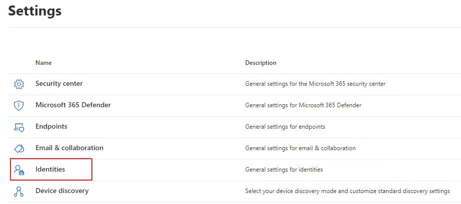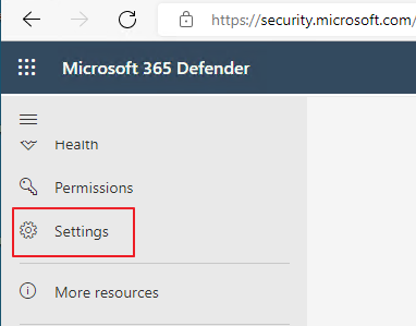 Microsoft Defender (https://security.microsoft.com/) -> Settings