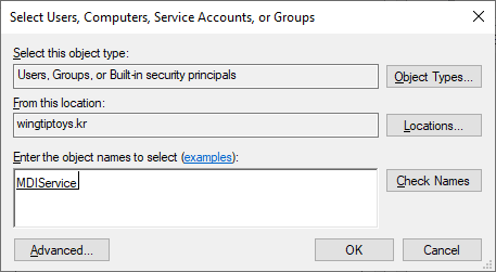 New-ADServiceAccount -Name MDIAdmin -DNSHostName “mdiadmin.wingtiptoys.kr” -PrincipalsAllowedToRetrieveManagedPassword MDIService