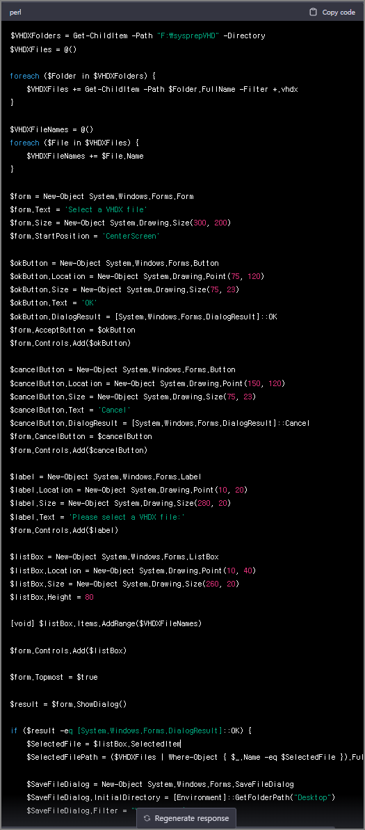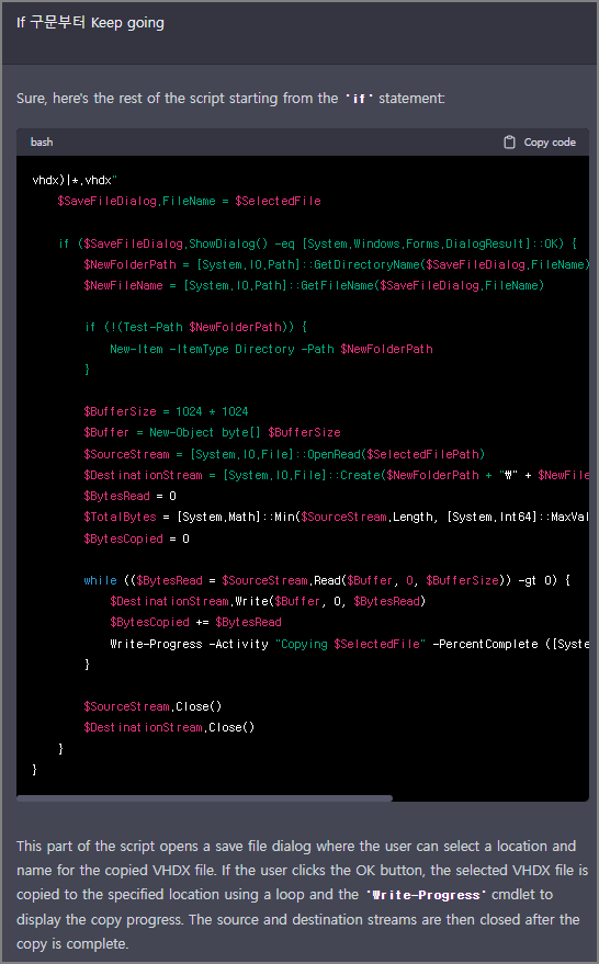 2023.02.11 - [ChatGPT] - ChatGPT. OS별 VHDX 파일을 지정한 뒤, 특정 경로를 지정하면 해당 경로로 복사해 주는 스크립트 생성