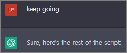 아래와 같이 답변을 주었으며, 역시 Script 길이가 길어지면 끊어지는 것을 확인할 수 있습니다.