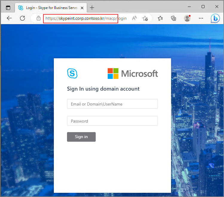To launch the new Control Panel in the browser, enter https://<pool-FQDN>/macp or a configured simple URL.브라우저에서 새 제어판을 실행하려면 https://<pool-FQDN>/mcp 또는 구성된 단순 URL을 입력하십시오.
