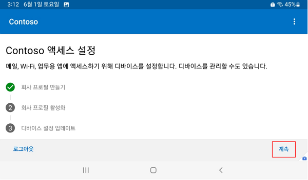 Android의 등록방식은 아래와 같이 크게 3가지가 있으며, 방금처럼 단순히 로그인한 방식은 Unmanaged BYOD입니다.