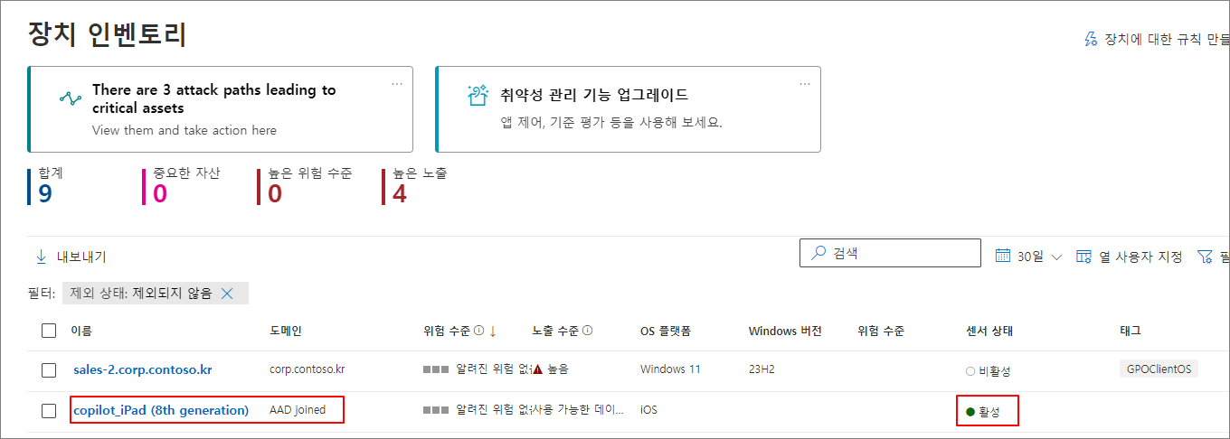 이렇게 진행하였을 경우에는, 테넌트에 장치를 등록하여 관리하는 형태가 아닙니다.