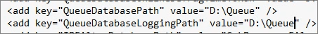 <add key="QueueDatabasePath" value="D:\Queue" />