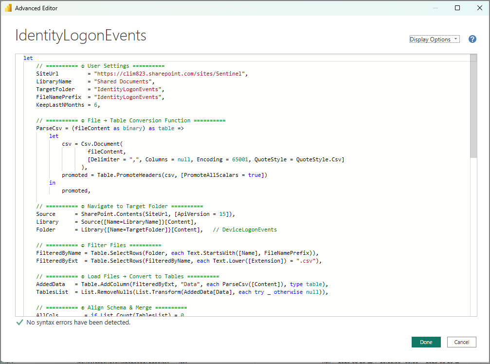 Power Query에서 SharePoint.Files() 함수를 사용해 폴더 내 CSV 병합