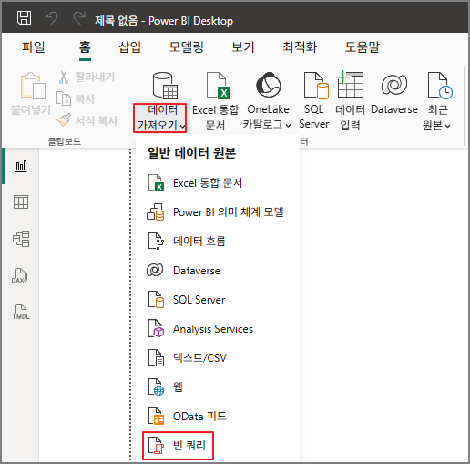 Power BI Desktop → 데이터 가져오기 → 빈 쿼리 → 고급 편집기