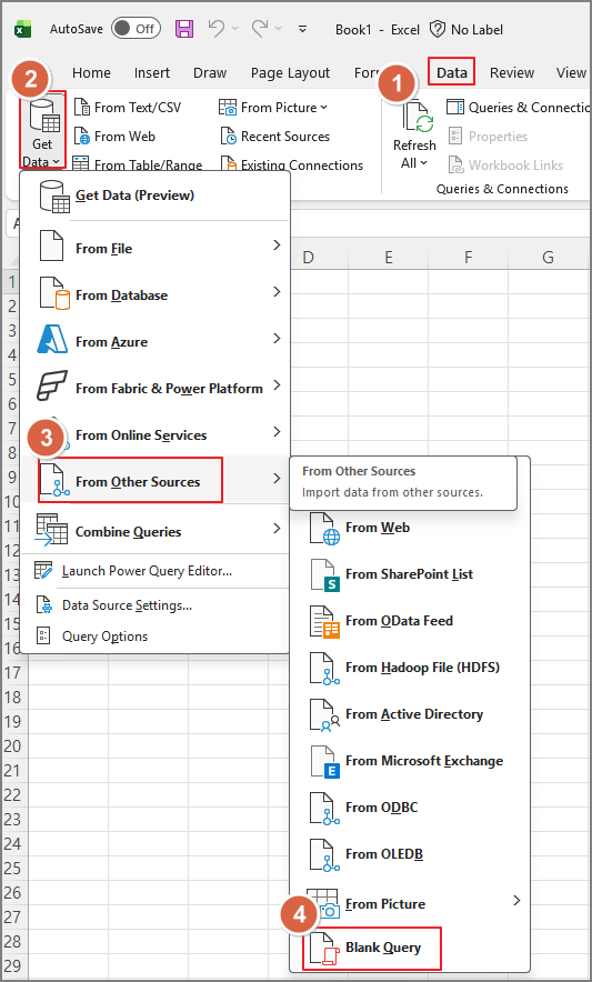 - Data(데이터) > Get Data > From Other Sources > Blank Query