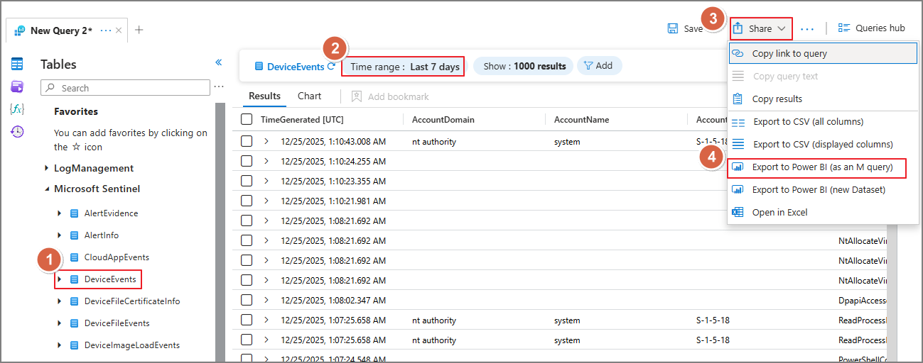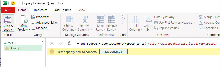 Step 1) Sentinel / Log Analytics에서 M Query 다운로드