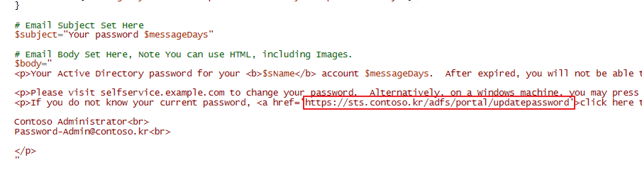 $from = "Password Notification <noreply-admin@contoso.kr>"