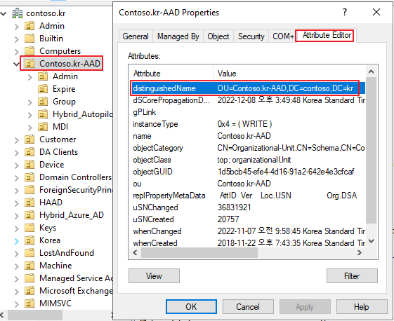 $SearchBase = "OU=Contoso.kr-AAD,DC=contoso,DC=kr"