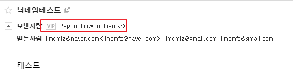 조직 외부로 발송시에는 다른 이름으로 표시할 수 있는 설정이 SimpleDisplayName 속성입니다.