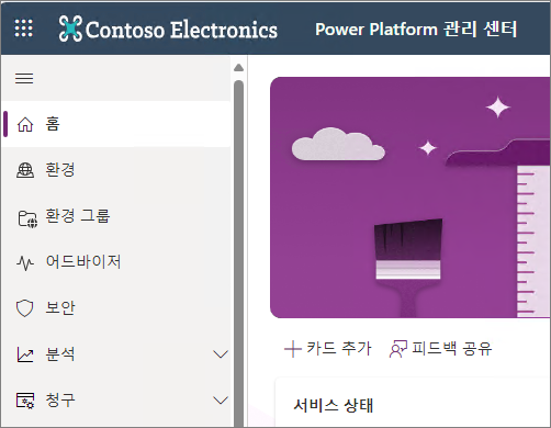 사용자 언어가 영어로 설정되어 있어도 Power Platform Admin Center와 Copilot Studio 페이지는 한글로 표시될 수 있습니다.