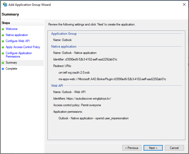 Openid, user_impersonation 체크 -> Next