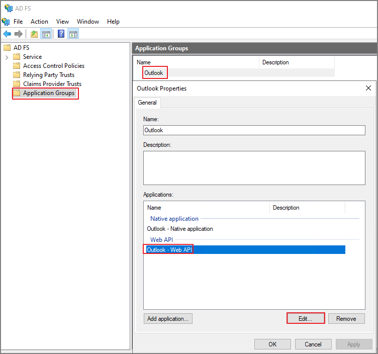 생성된 Application Group 에서 Web API -> Edit