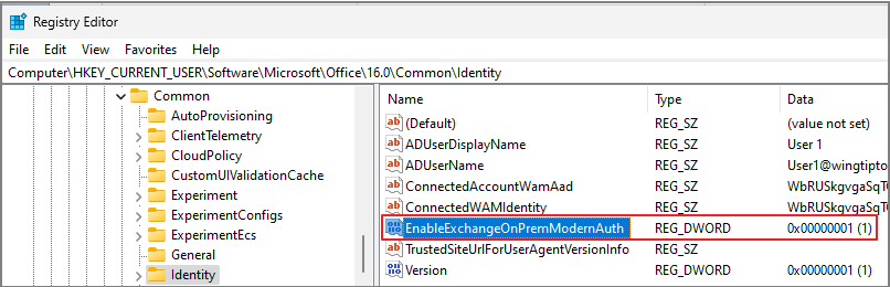 EnableExchangeOnPremModernAuth=dword:00000001