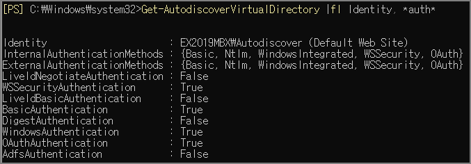 Get-AutodiscoverVirtualDirectory |fl Identity, *auth*