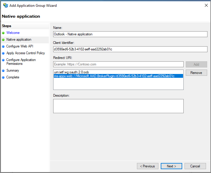 이름 지정 -> Native application accessing a web API 선택 -> Next