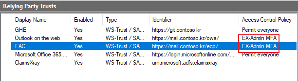 Relying Party Trusts 에서 적용할 항목을 선택 , Edit Access Control Policy
