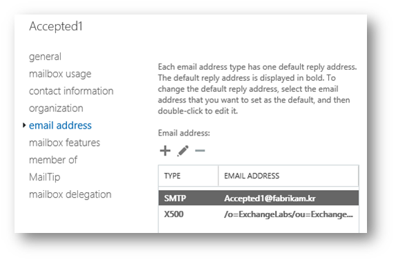 이번에는 실제 Adatum.kr 로 구축한 Exchange Server 2010 에는 onprem-1@adatum.kr 주소의 사서함을 만들고 contoso.kr에는 만들지 않는 시나리오로 진행해 보겠습니다.