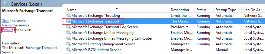 Microsoft Exchange Transport 서비스를 재시작합니다.