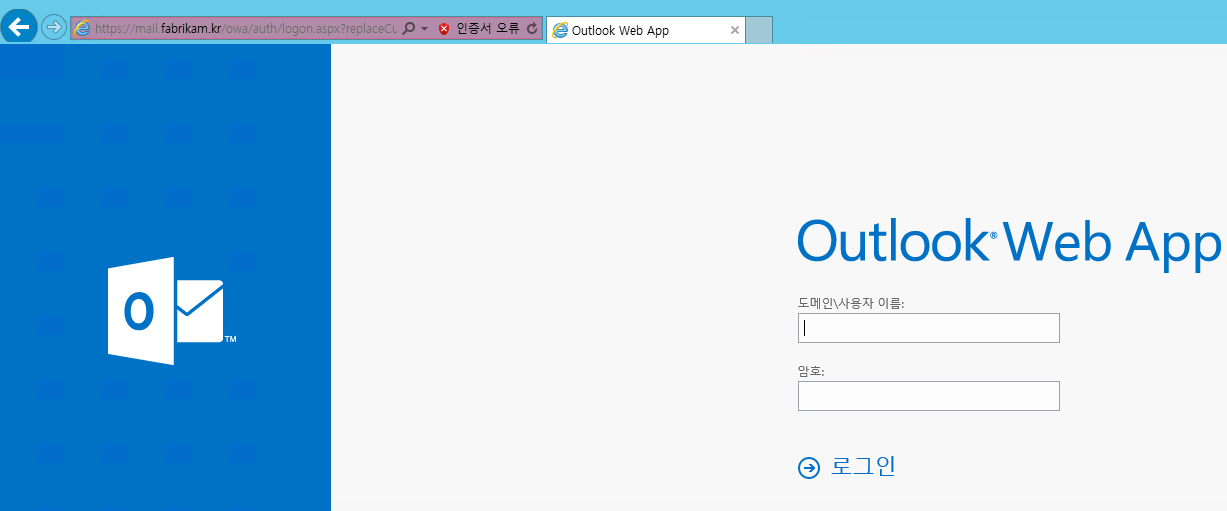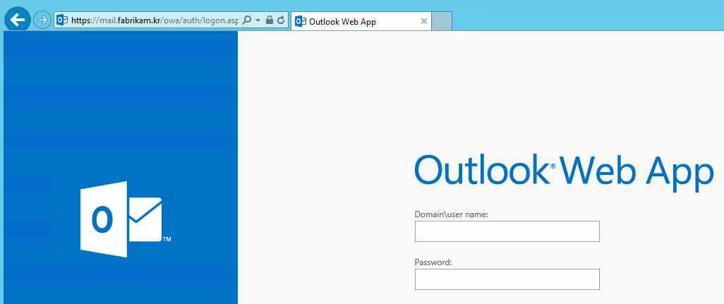 - URL http:// <ServerName> /owa 또는 또는를 엽니다 http://127.0.0.1/owa http://localhost/owa) .